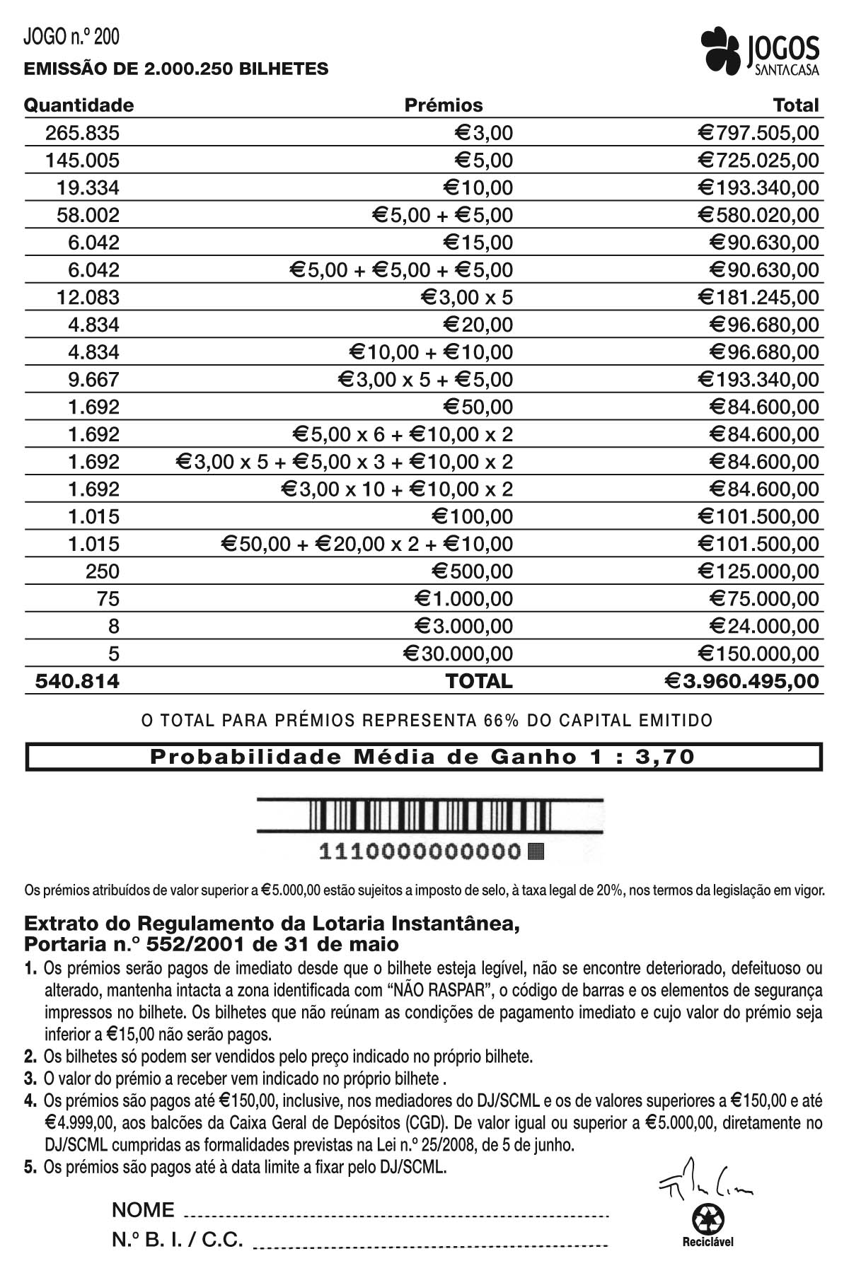 Plano de Prémios e Regulamento