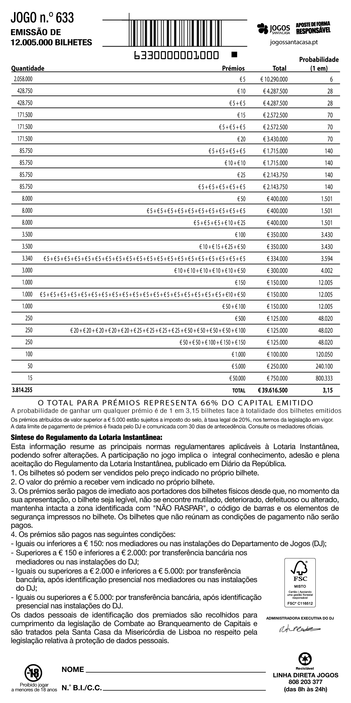 máximo do jogo - € 50.000