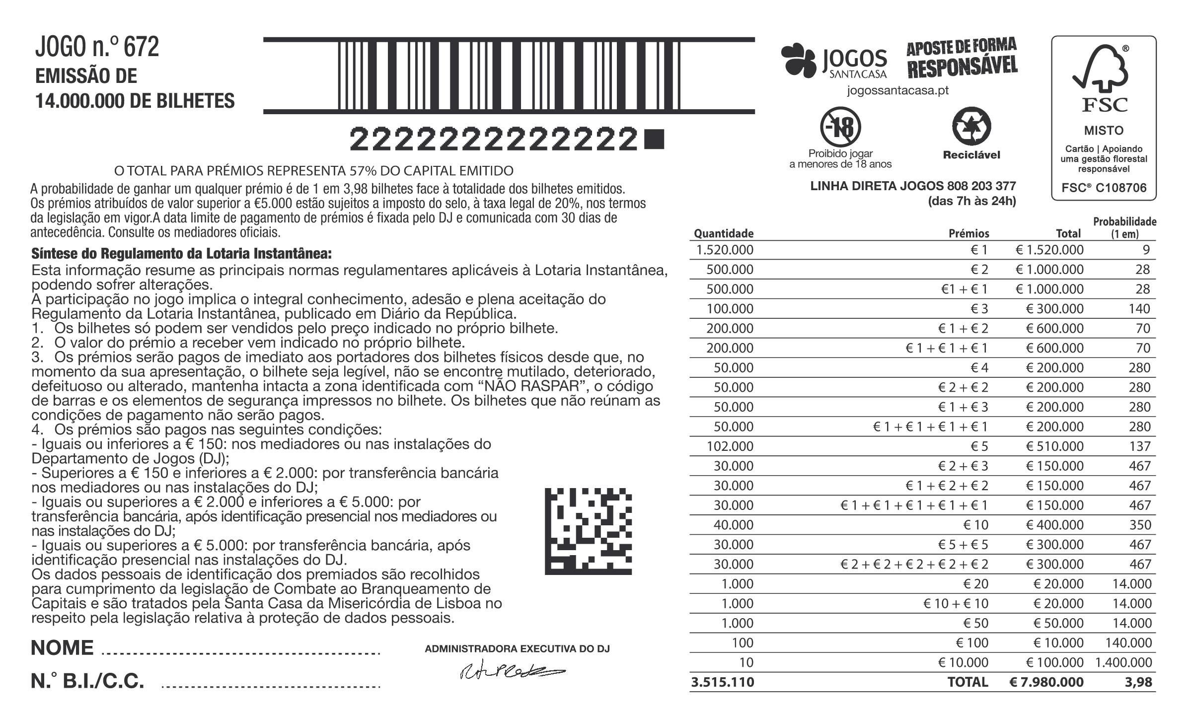 informações adicionais, consulte o seu mediador oficial dos Jogos Santa Casa.