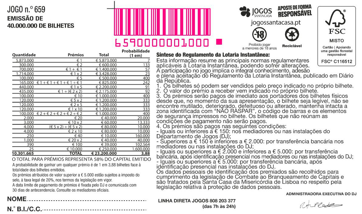 Data-limite de pagamento de prémios - Ainda sem data definida. Para informações adicionais, consulte o seu mediador oficial dos Jogos Santa Casa.